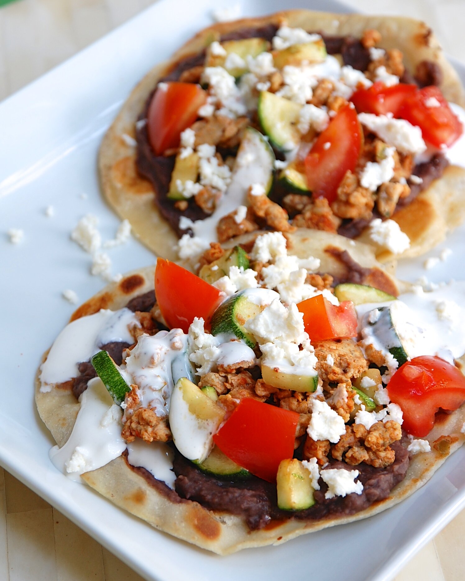 Homemade Chorizo, Refried Black Bean and Zucchini Tacos